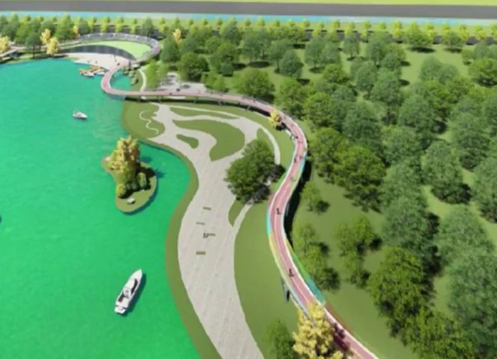 靖江小橋港濱水景觀鋼結構架空自行車道